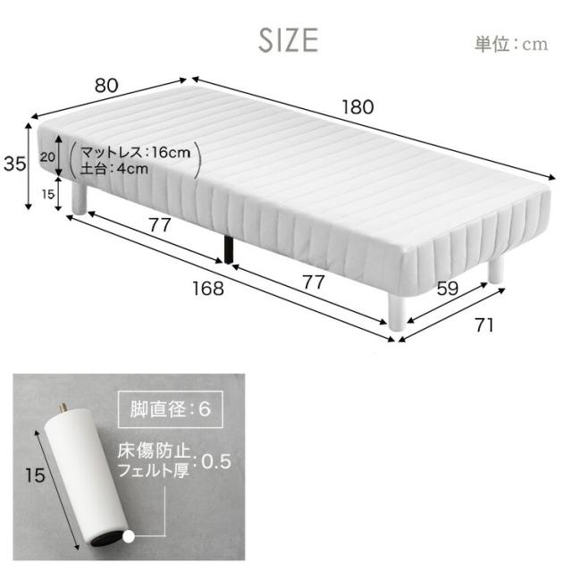 ※こちらの商品は、2022年12月8日より、木脚からマットレスと同色の樹脂脚に、カバーを取り外ししやすいボックスシーツ型に仕様変更しました。