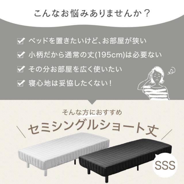 脚付きマットレス sss セミシングル RENEWワントーンデザイン 洗えるカバー付 ショート丈 コンパクト ボンネルコイル 脚付きマットレスベッド セミシングルベッド 180cm 足付きマットレス マットレス ベッド マットレスベッド セミシングルショート