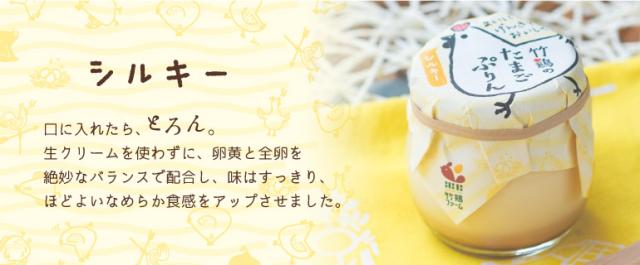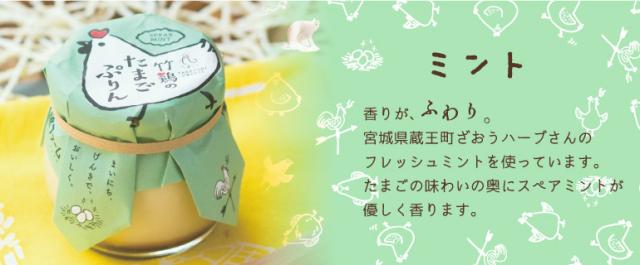 | 養鶏家の竹鶏ファームならでは、 タマゴ好きに贈る竹鶏たまごのプリンです。 プリンの大切な素材といえば、卵と牛乳。 竹鶏たまごのおいしさを丸ごと味わってもらいたいから、 新鮮な朝採れの若鶏たまごを使いました。 牛乳は、同じ地元・白石市の山田乳業さんの牛乳の中でも 産地を厳選して作られた「蔵王三十六景牛乳」を使用しています。 プレーン、シルキー、ミントの3種からお選びいただけます。 | ||||||||||||