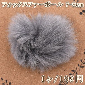 フォックスファー ポンポンボール 7-9cm 天然素材 グレー