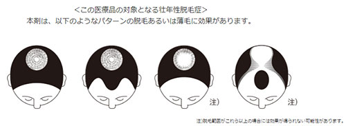 | 効能・効果 | 壮年性脱毛症における発毛、育毛及び脱毛(抜け毛)の進行予防。 |