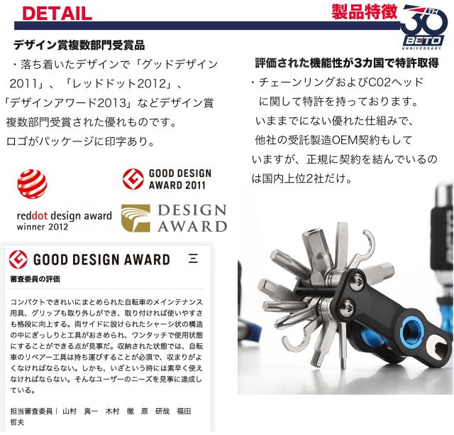 ベト(BETO) 18-IN-1 マルチツール ロードバイク CO2ヘッド付 グッドデザイン賞受賞 台湾製 自転車工具セット QikFix Supreme BT-343