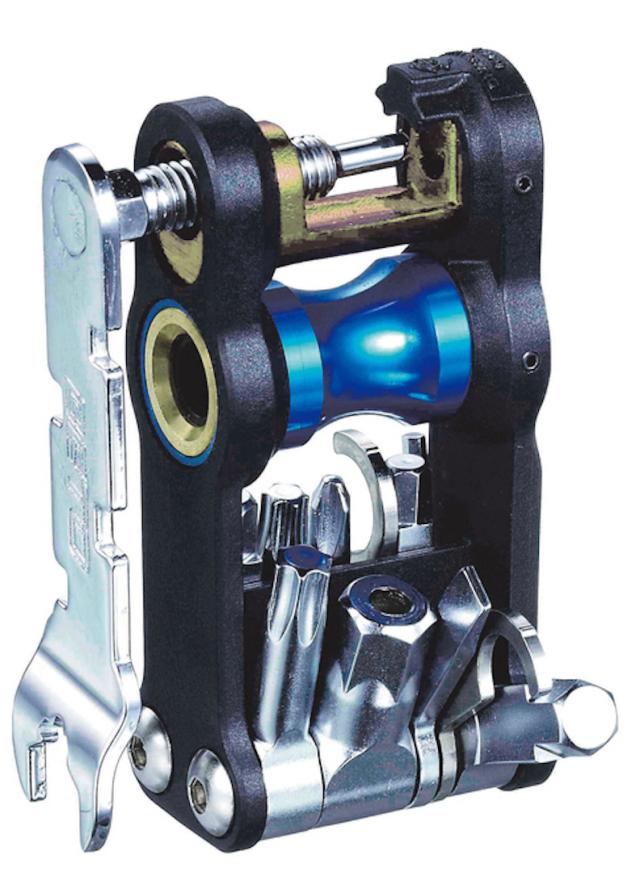 自転車メンテナンスに必要となる一般的なツールはもちろん、C02ヘッド(仏/米兼用マルチノズル)およびチェーンリングまでされる搭載モデルとなっております。