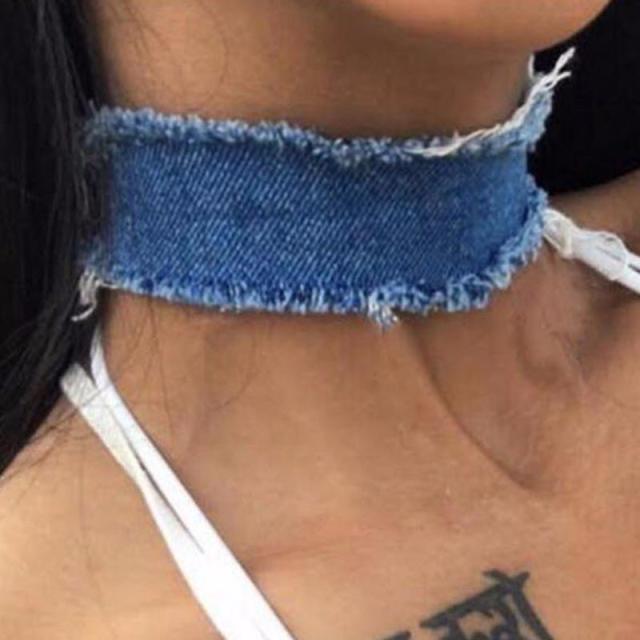 青色デニム生地のネックレススチョーカーは、どんなファッションにも合わせやすいマストアイテム。