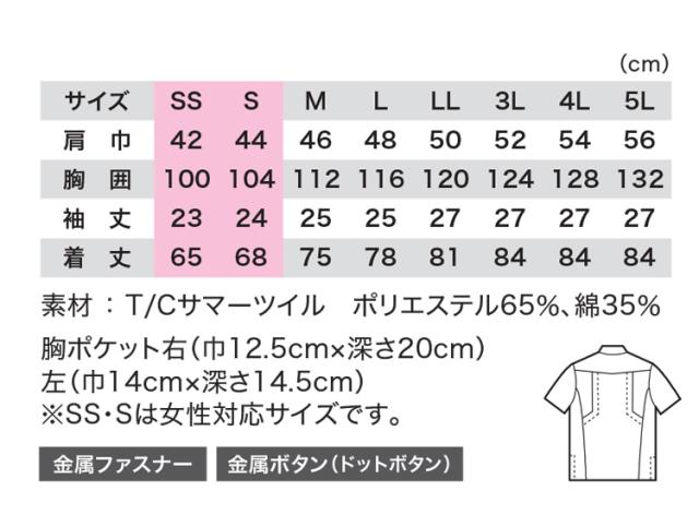 XEBEC ジーベック 春夏 半袖シャツ 1632