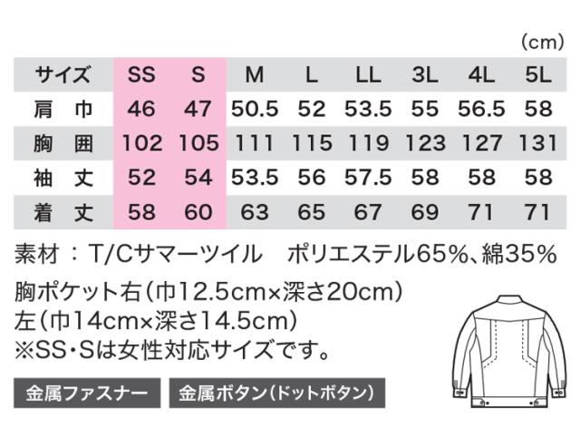 XEBEC ジーベック 春夏 半袖ブルゾン 1631 大きいサイズ5L