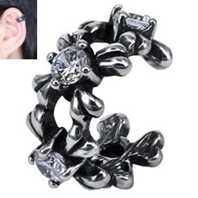 十字架にクリスタルのジルコニアをセットしたしたおしゃれなステンレスイヤーカフ。