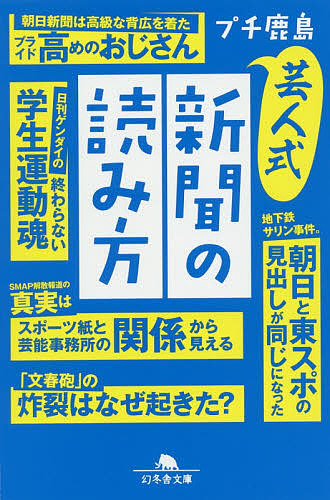 新聞には芸風がある。だから下世話に楽しんだほうがいい!おじさんに擬人化することで親しみが湧く朝刊紙。見出しの書き方でわかる政権との距離。世論調査の質問に表れる各紙の立場。朝刊スポーツ紙と芸能事務所の癒着から見える真実etc.…。人気時事芸人が実践する毎日のニュースとの付き合い方。ジャーナリスト青木理氏との対談も収録。