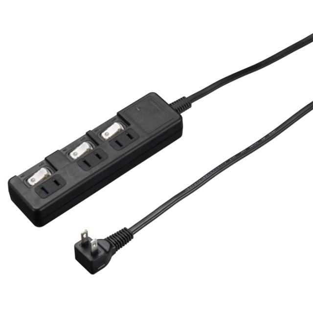 雷ガード付3個口節電タップ0.3mブラック ヤザワ H8KS3303BK【送料無料】