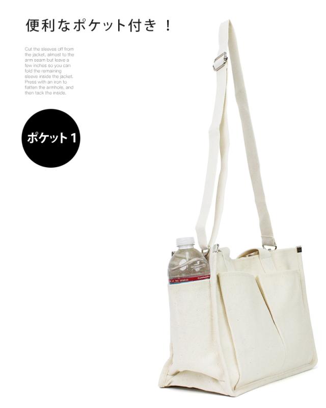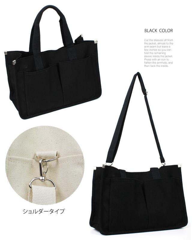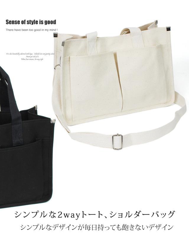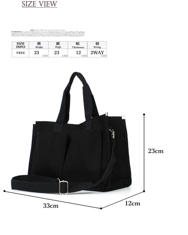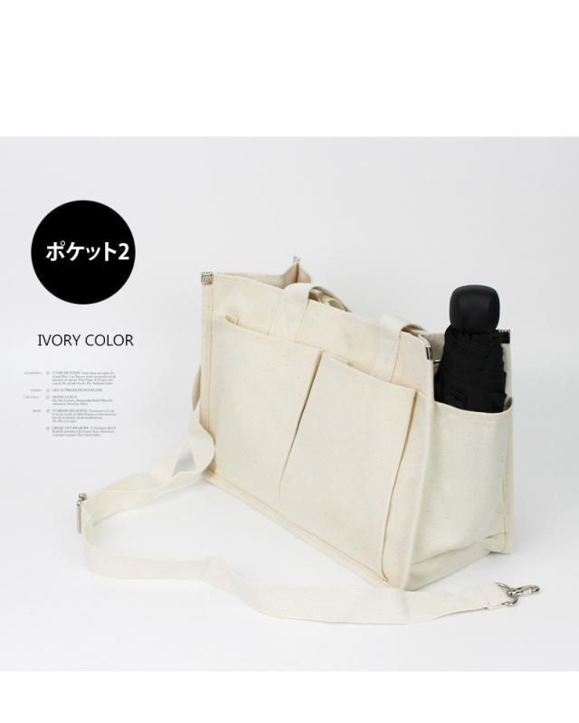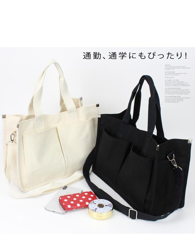 送料無料 2WAYキャンバストートバッグ!多収納ポケット!