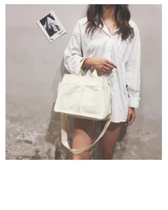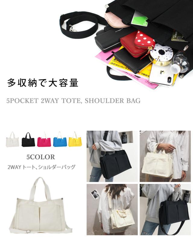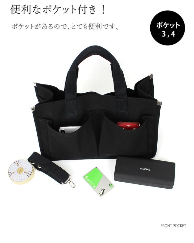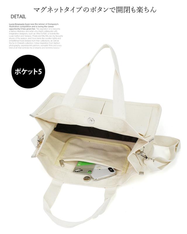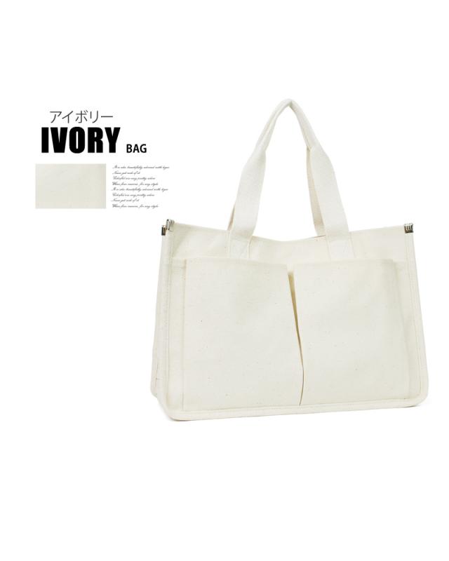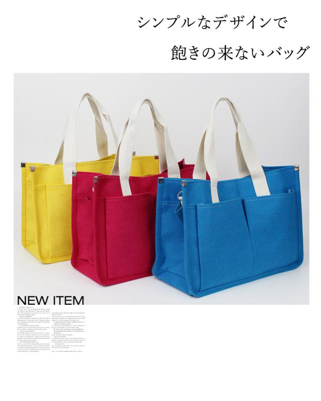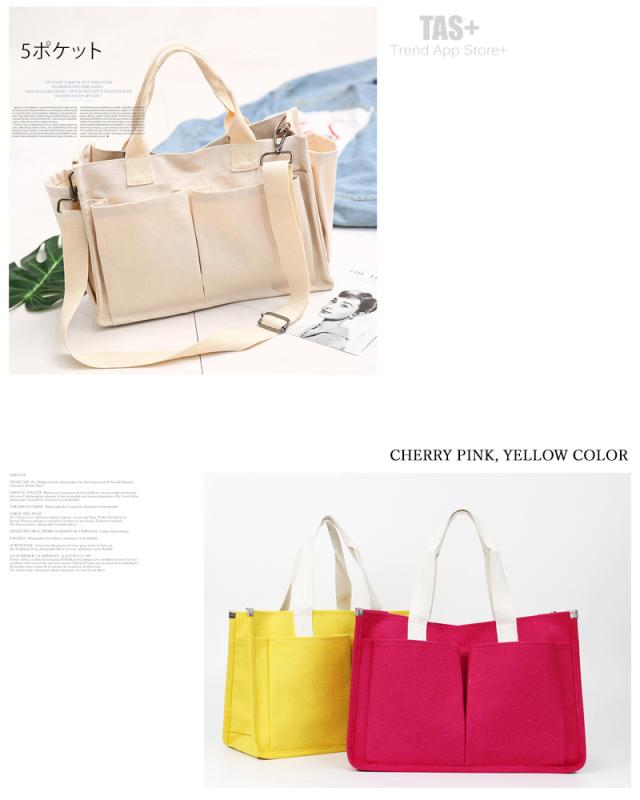 送料無料 2WAYキャンバストートバッグ!多収納ポケット!