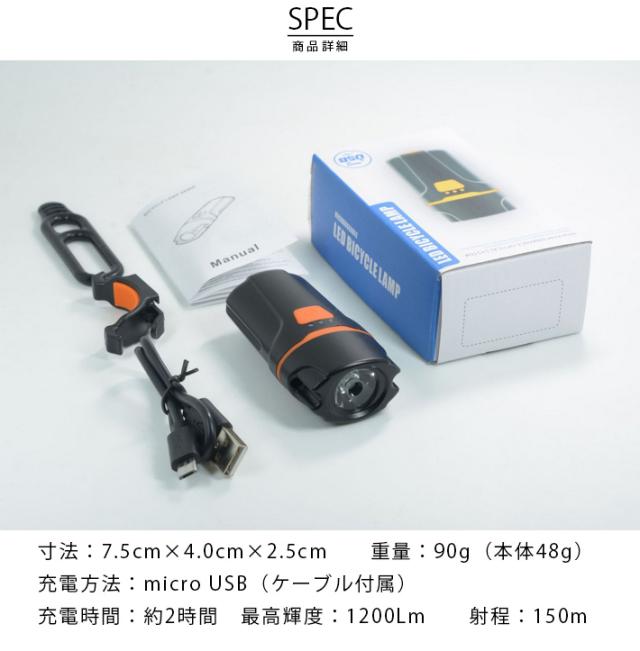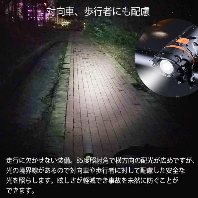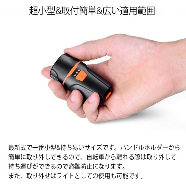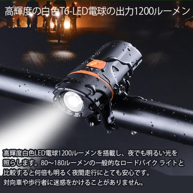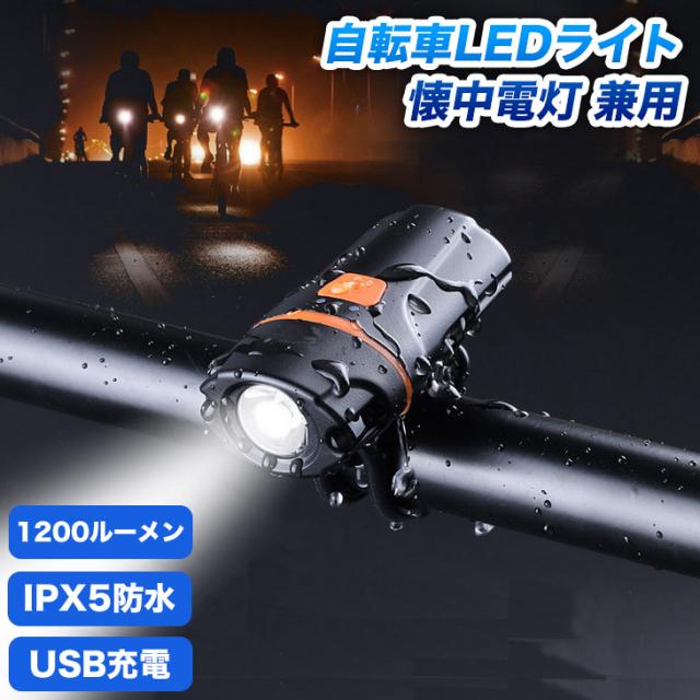 IPX5防水 USB充電式 超小型 LED 自転車ライト 1200ルーメン 6段階点灯モード 大容量 2500mah 懐中電灯 防災 兼用 盗難防止 自転車前照灯 バッテリー