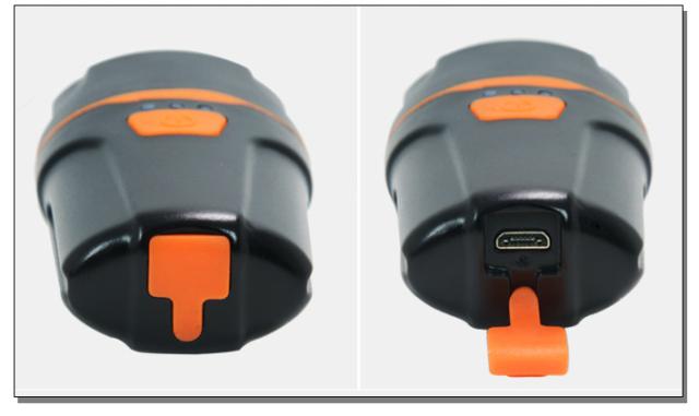 @本体底面のmicroUSBポートのキャップを開けて、付属のUSB充電ケーブルを接続します。