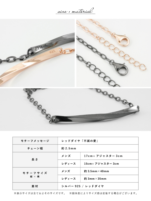 ペアブレスレット ブレスレット チェーン シルバー925 プレート ツイスト ひねり レッドダイヤ レッドダイア close to me 刻印 名入れ テディベア 贈り物 ギフト ペア メンズ レディース