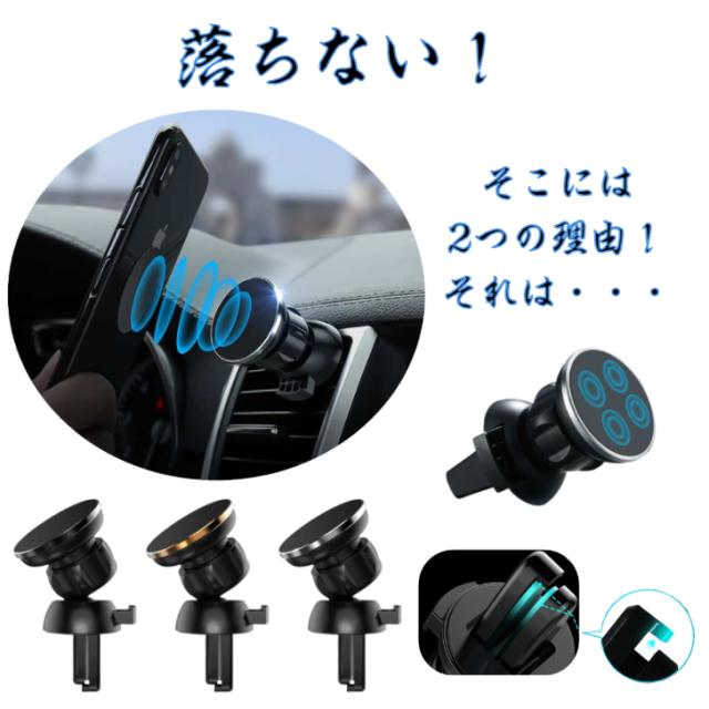 マグネットホルダー エアコン吹出口用 マグネット強タイプ落下防止フック付き スマホ 車載 ホルダーiphone アンドロイド モバイル メール便送料無料