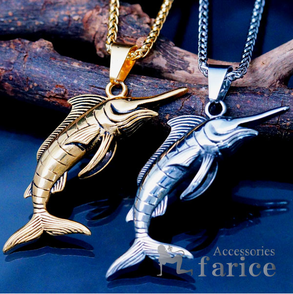 ビッグ カジキ 角 フィッシング 魚 釣り 魚釣り 釣り好き 釣り人 ステンレス 重厚 メンズ ペンダント ネックレス 【ゴールド or シルバー】