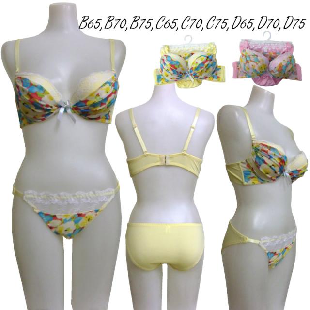 ブラジャー ショーツ セット ブラセット 花柄 B70 B75 C70 C75 D70 D75 レディース 下着 ブラセット メール便送料無料