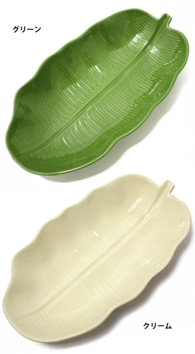 大皿 リーフ お皿 トレイ タイ バリ ハワイアン バナナリーフトレイ バナナ お皿 トレイ Lサイズ グリーン クリーム アジアン プレート 南国 アジアン プレート リゾート 食器 おしゃれ 大皿 陶器 テーブル 通販