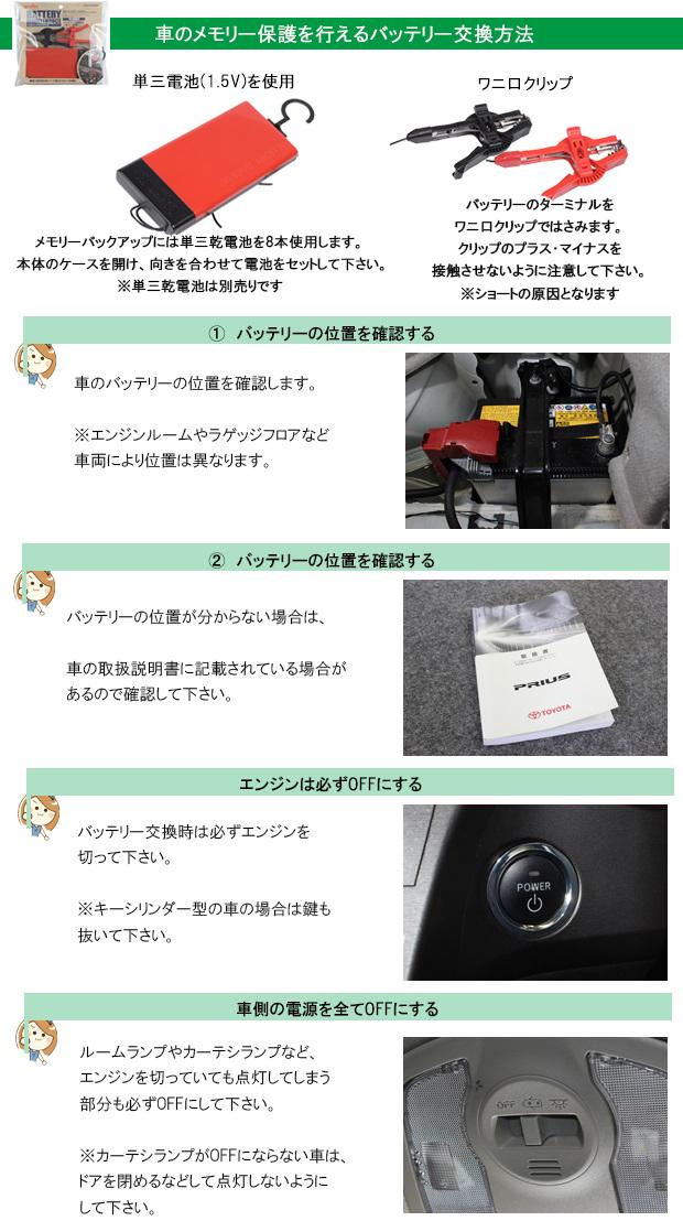 ■車両のメモリー(オーディオ、コンピューター、パワーウィンドウ等)を単三乾電池8本で保護