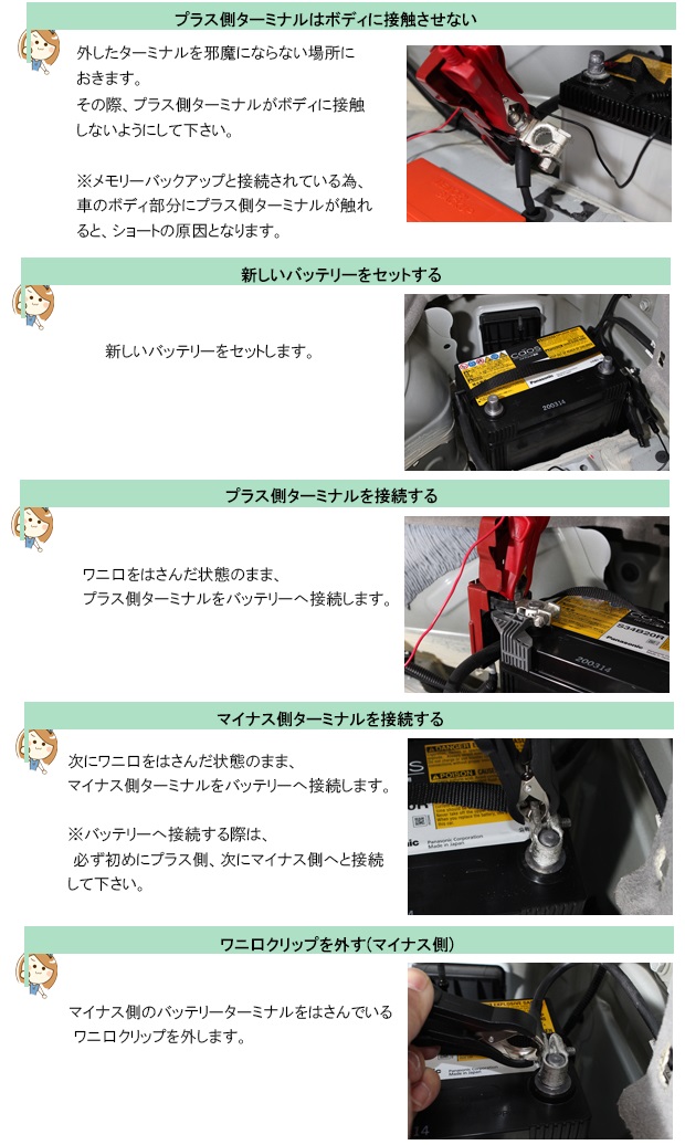 バッテリー交換時、バッテリーを外すと時計やオーディオ・ナビゲーションの設定コンピューター等がリセットされる場合があります。