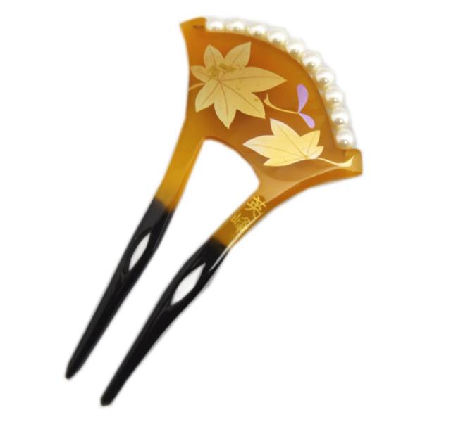 かんざし 簪 髪飾り パール付 小ぶり 飴色塗金彩楓 着物 きもの 留袖 結婚式 訪問着 浴衣 ゆかた