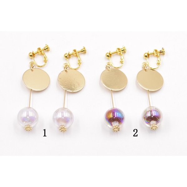 丸プレート×アクリル1粒チャームのイヤリング