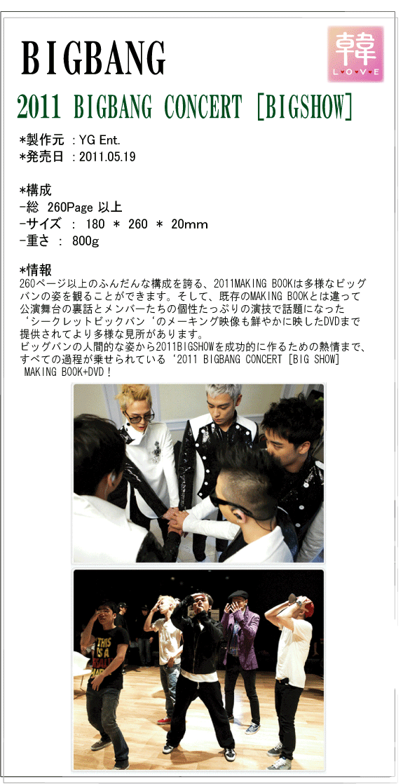 BIGBANG 2011 BIGBANG CONCERT [BIGSHOW] MAKING DVD & PHOTO BOOK+DVD 8809321816152(10003092) *