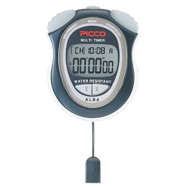 タイマー機能がついて便利に使えるストップウオッチ。■商品名:アルバピコ マルチタイマー■品番 :ADME001 ブラック ■メーカー希望小売価格 : 3,465円<主な仕様> 重 さ 63g 厚 み 27mm 時間精度 ±0.0012%以内 月差換算 ±30秒以内(常温)