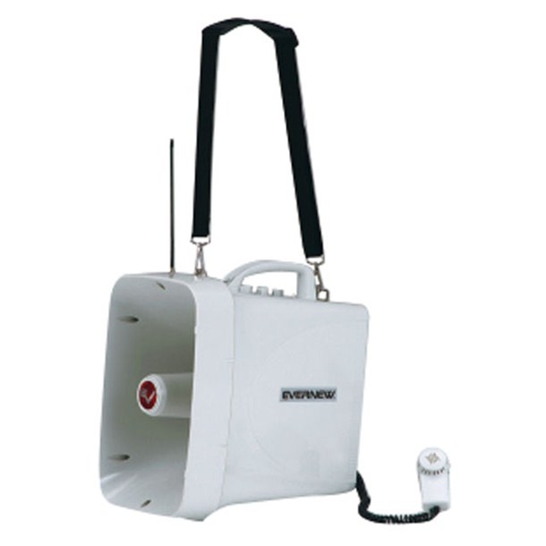 仕様:使用電源/単1乾電池8本(別売)、出力/定格30W・最大45W、持続時間/音声時約22時間(JEITA)、到達距離/音声時約800m、外部電源使用範囲:DC10V〜16V(12Vバッテリー)、防水性能IPX5に適合(本体)、音声+ピストル音機能付、紙雷管の疑似音が出せる