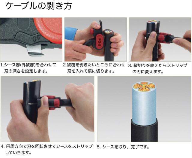 IWISS ケーブル被覆剥き器 外径φ25mm以上の太線シース向け ケーブルストリッパー ラチェット式 AMS PG-5