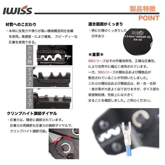 アイウィス IWISS 2000円ぽっきり 裸圧着端子 圧着ペンチ 裸圧着スリーブ 圧着工具 0.5-6.0mm2対応 SN-06