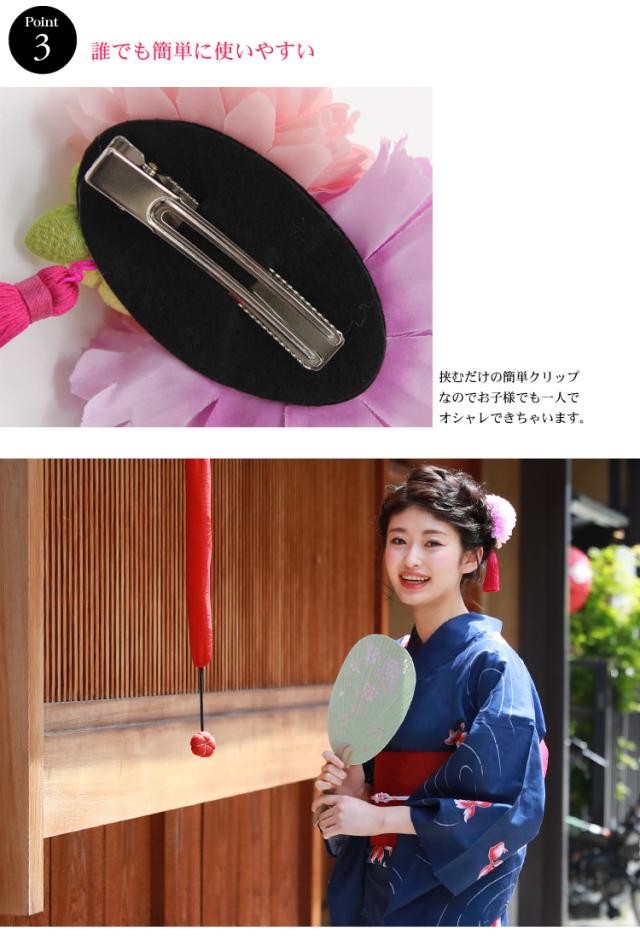 「なでしこ」浴衣 髪飾り クリップ「タッセル付き髪飾り」花 ちりめん 大人 ヘアアクセサリー 浴衣用ヘアーアクセサリー 浴衣 夏祭り