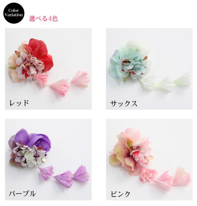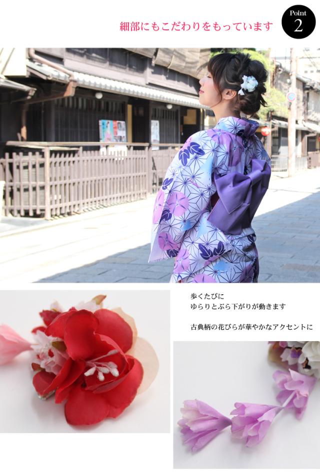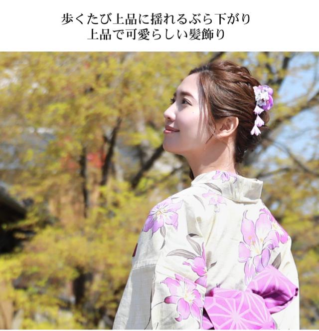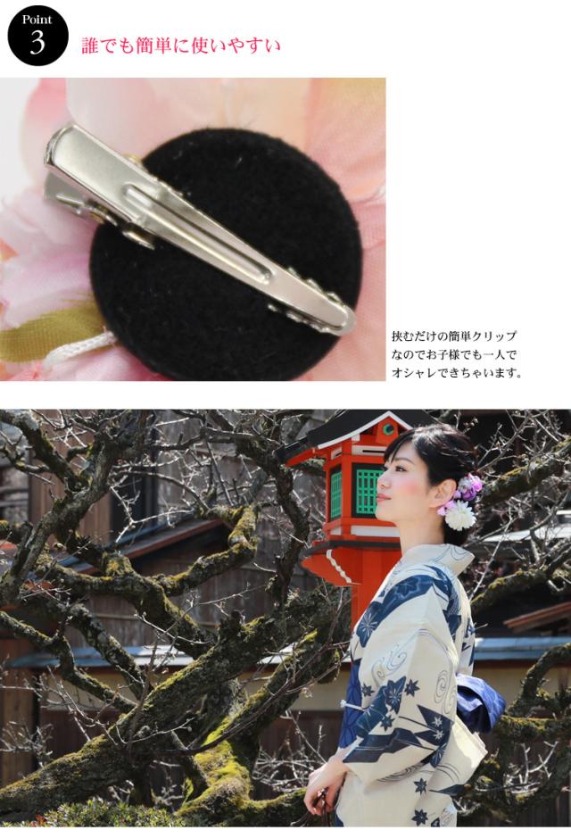 「なでしこ」日本製 浴衣 髪飾り クリップ「ぶら下がり付き古典柄髪飾り」花 ちりめん 大人 ヘアアクセサリー 浴衣用ヘアーアクセサリー