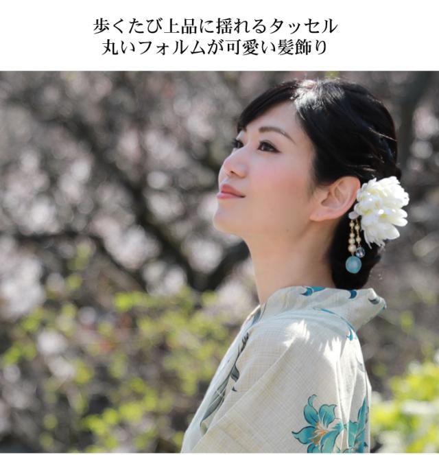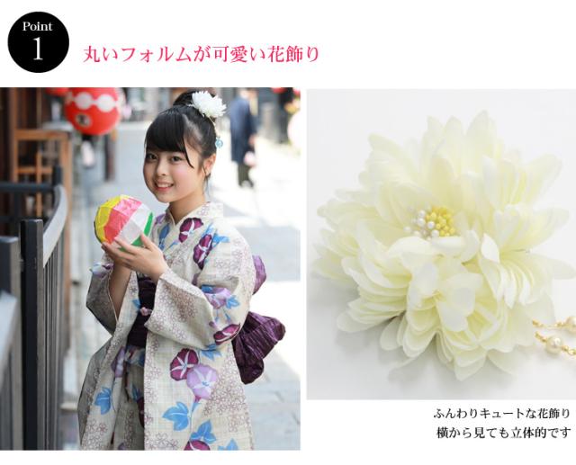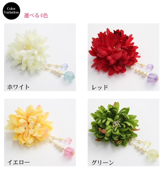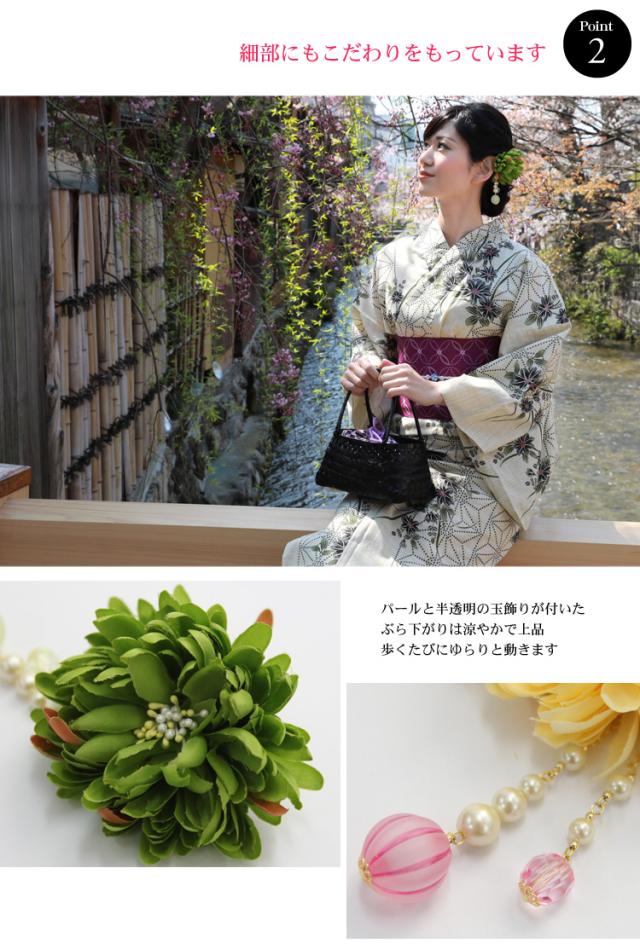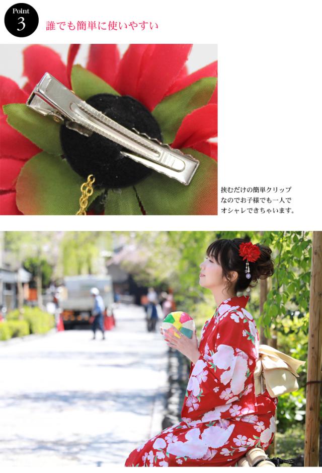 「なでしこ」日本製 浴衣 髪飾り クリップ「玉飾り付き花髪飾り」花 ちりめん 大人 ヘアアクセサリー 浴衣用ヘアーアクセサリー 浴衣