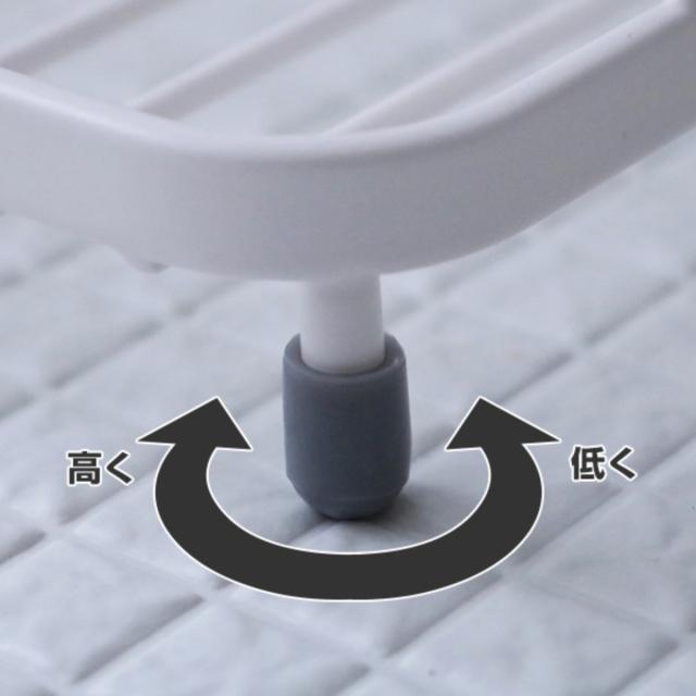 本体にはすべり止めが付いているので、浴室等の床を傷つけることなく、安心してお使いいただけます。また、ネジで傾きを調節できるので、安定した設置が可能です。