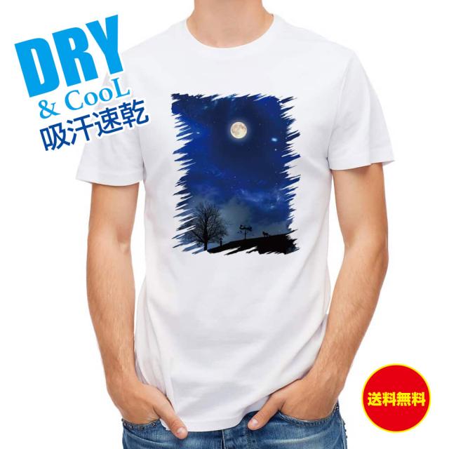 かわいい Tシャツ 屋根の上のネコと満月 ネコ ねこ 雑貨 T シャツ レディース 半袖 ロゴ 文字 春 夏 秋 インナー 安い 面白い 大きいサイズ 洗濯 ポリエステル 送料無料