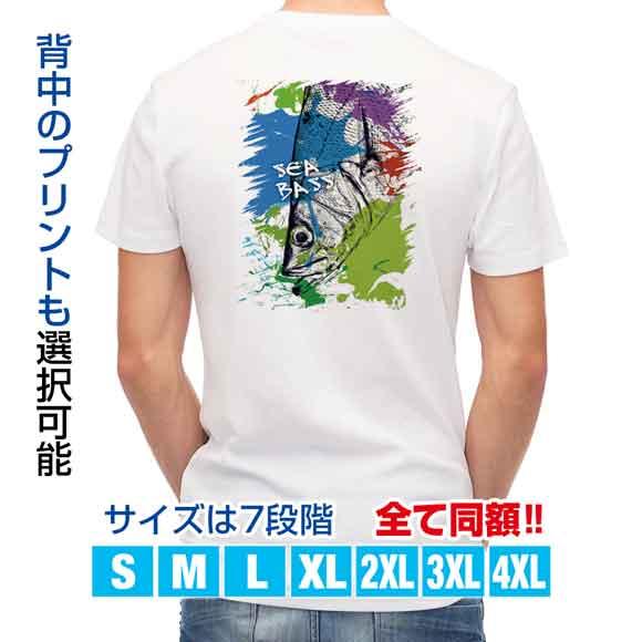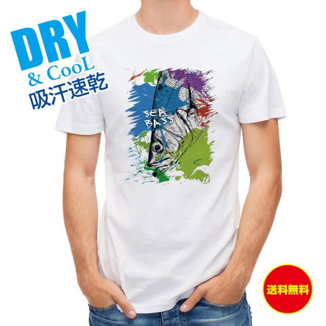 釣り Tシャツ アウトドア シーバス(ヒラスズキ) ペンキペイント 釣り 魚 ルアー T シャツ メンズ 半袖 ロゴ 文字 春 夏 秋 インナー 安い 面白い 大きいサイズ 洗濯 ポリエステル 送料無料