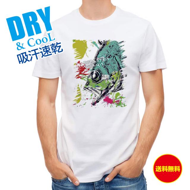 釣り Tシャツ アウトドア メバル ペンキペイント 釣り 魚 ルアー T シャツ メンズ 半袖 ロゴ 文字 春 夏 秋 インナー 安い 面白い 大きいサイズ 洗濯 ポリエステル 送料無料
