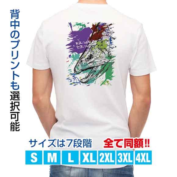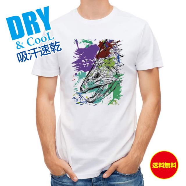 釣り Tシャツ アウトドア ブラウントラウト ペンキペイント 釣り 魚 ルアー T シャツ メンズ 半袖 ロゴ 文字 春 夏 秋 インナー 安い 面白い 大きいサイズ 洗濯 ポリエステル 送料無料