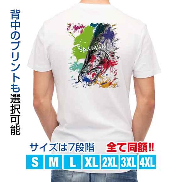 釣り Tシャツ アウトドア サケ ペンキペイント 釣り 魚 ルアー T シャツ メンズ 半袖 ロゴ 文字 春 夏 秋 インナー 安い 面白い 大きいサイズ 洗濯 ポリエステル 送料無料