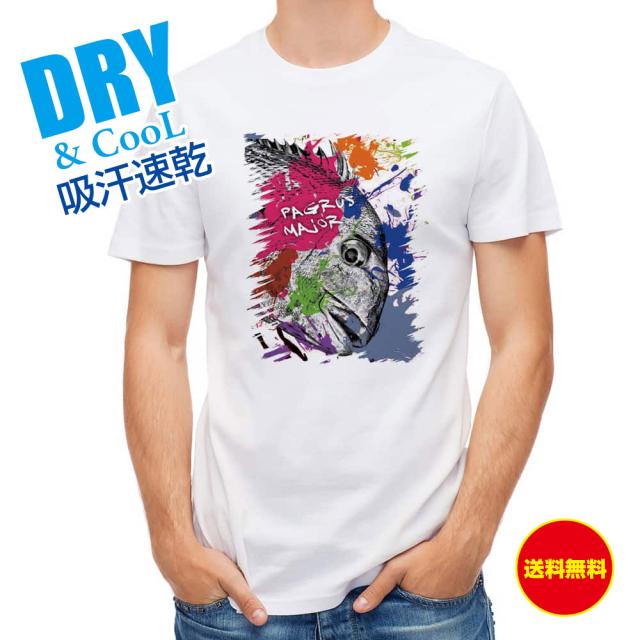 釣り Tシャツ アウトドア マダイ ペンキペイント 釣り 魚 ルアー T シャツ メンズ 半袖 ロゴ 文字 春 夏 秋 インナー 安い 面白い 大きいサイズ 洗濯 ポリエステル 送料無料