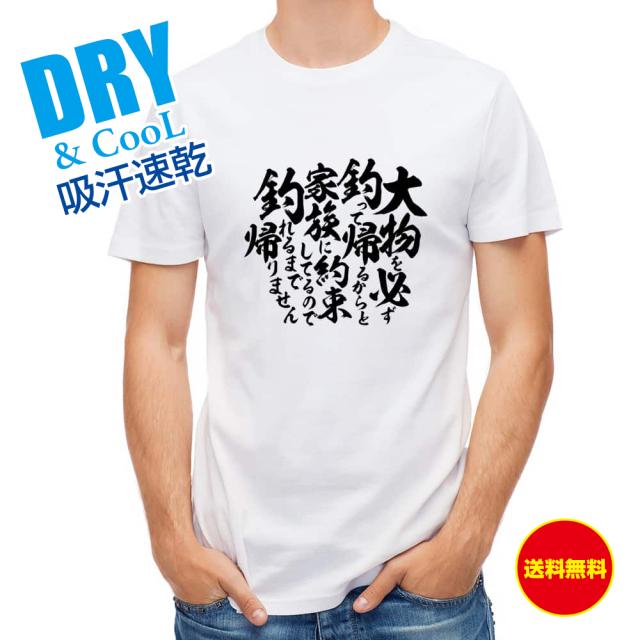 釣り Tシャツ アウトドア 釣りざんまい 釣りと自分と家族との約束 T シャツ 半袖 ドライ 魚 ブラックバス ルアー 送料無料 ウェア 面白い メンズ ロゴ 文字 春 夏 秋 インナー 安い 大きいサイズ 洗濯 ポリエステル