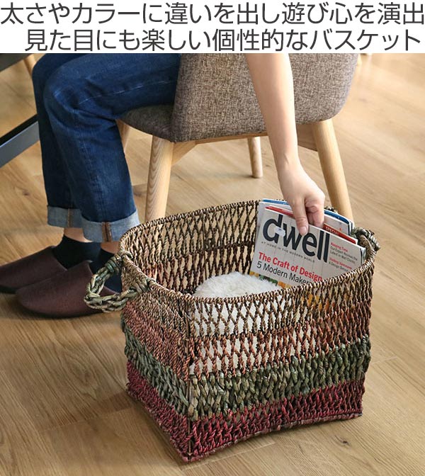 バスケット ランパカナイ 収納 幅42×奥行35×高さ39cm かご 持ち手付き ( 北欧 カゴ 収納バスケット リビング 収納かご 収納ボックス 角型 バスタオル タオル リビング収納 ランドリー収納 ランドリー おしゃれ )