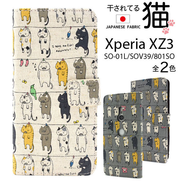 Xperia XZ3 SO-01L SOV39 801SO ケース 手帳型 干されてる猫 カバー エクスペリア エックスゼットスリー スマホケース
