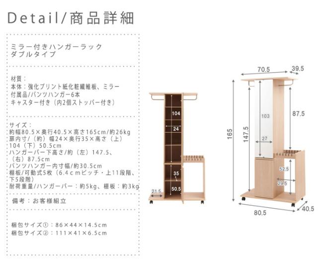 Mirlo ミルロ ミラー付きハンガーラック ダブルタイプ