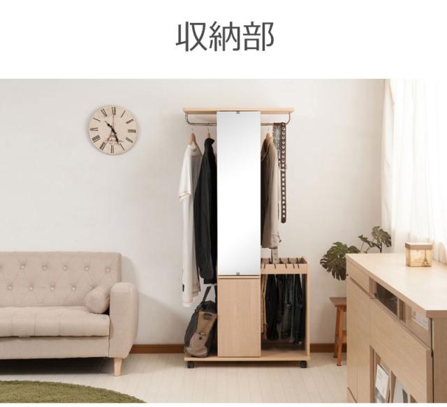 全身ミラー付きですっきりとしたデザインはリビングにもOK。