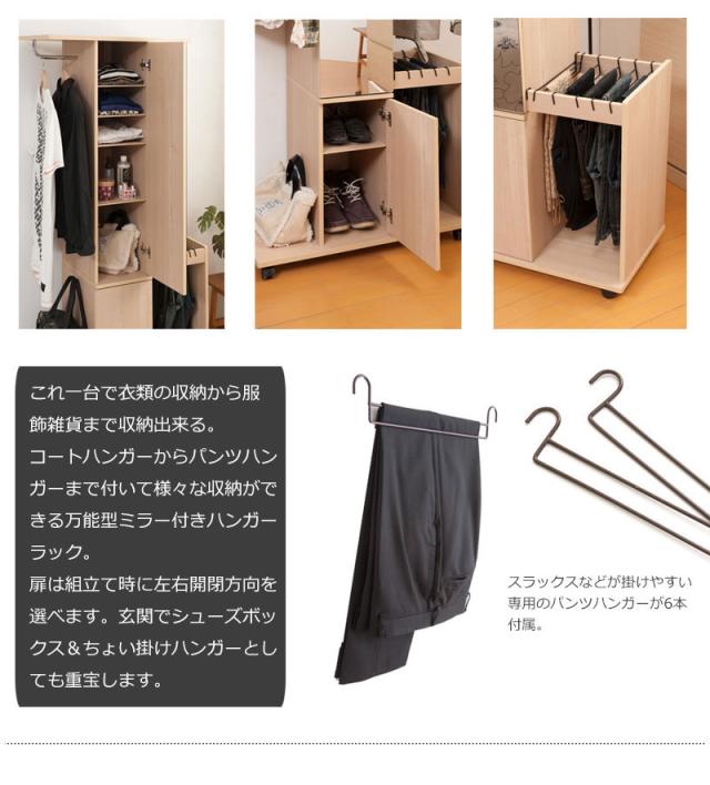 ミラー付きで収納まで完備のハンガーラック。