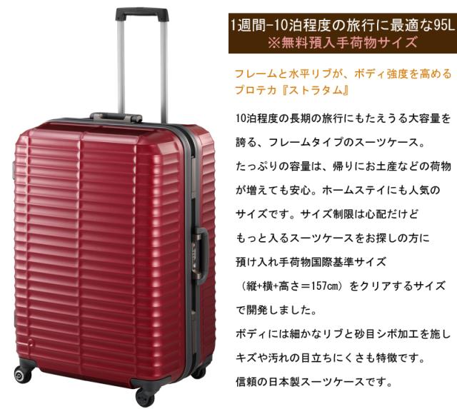 送料無料 無料預入手荷物 日本製 エース(ACE) PROTECA/プロテカ ストラタム フレームスーツケース 95L 00852 1週間-10泊 スーツケースベルトプレゼント