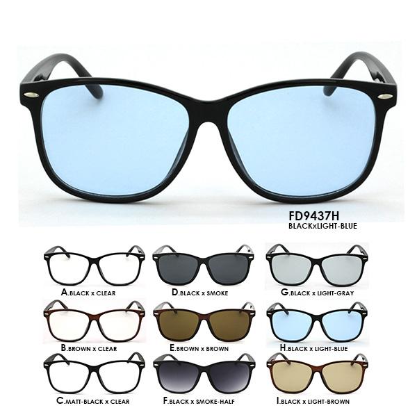 ◆大流行のレトロなスクエアウェリントン型のだてめがね(デカサン)&サングラス&ライトカラー