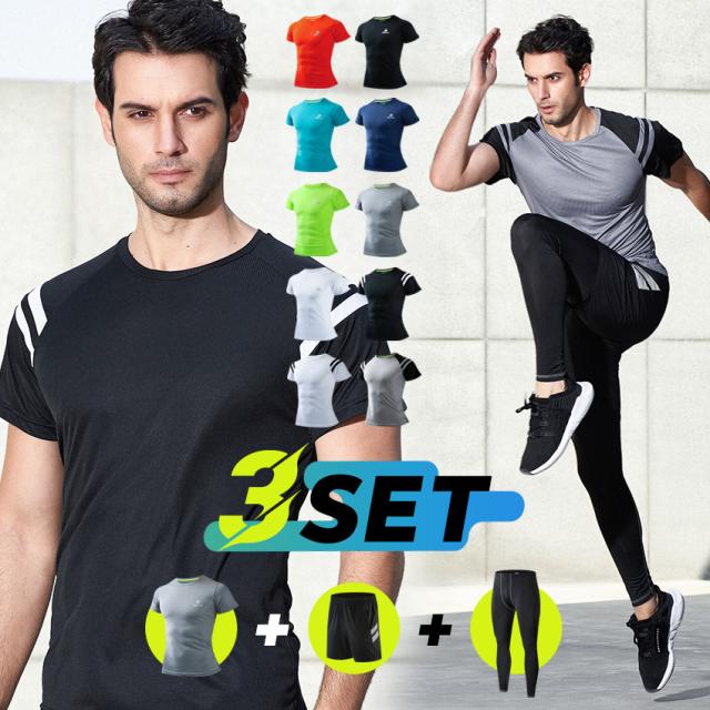 メンズスポーツウェア3点セット トップス + ハーフパンツ + レギンス |